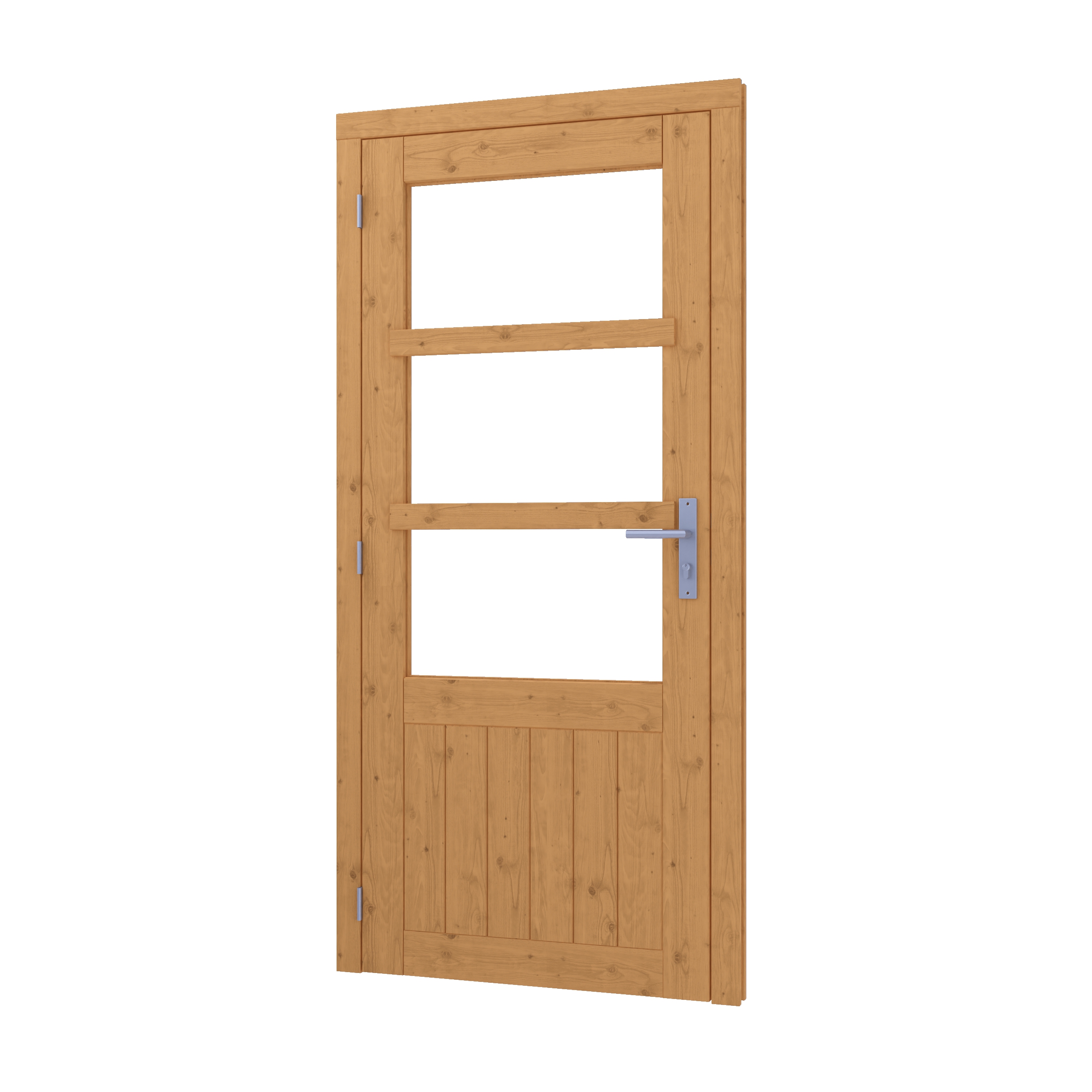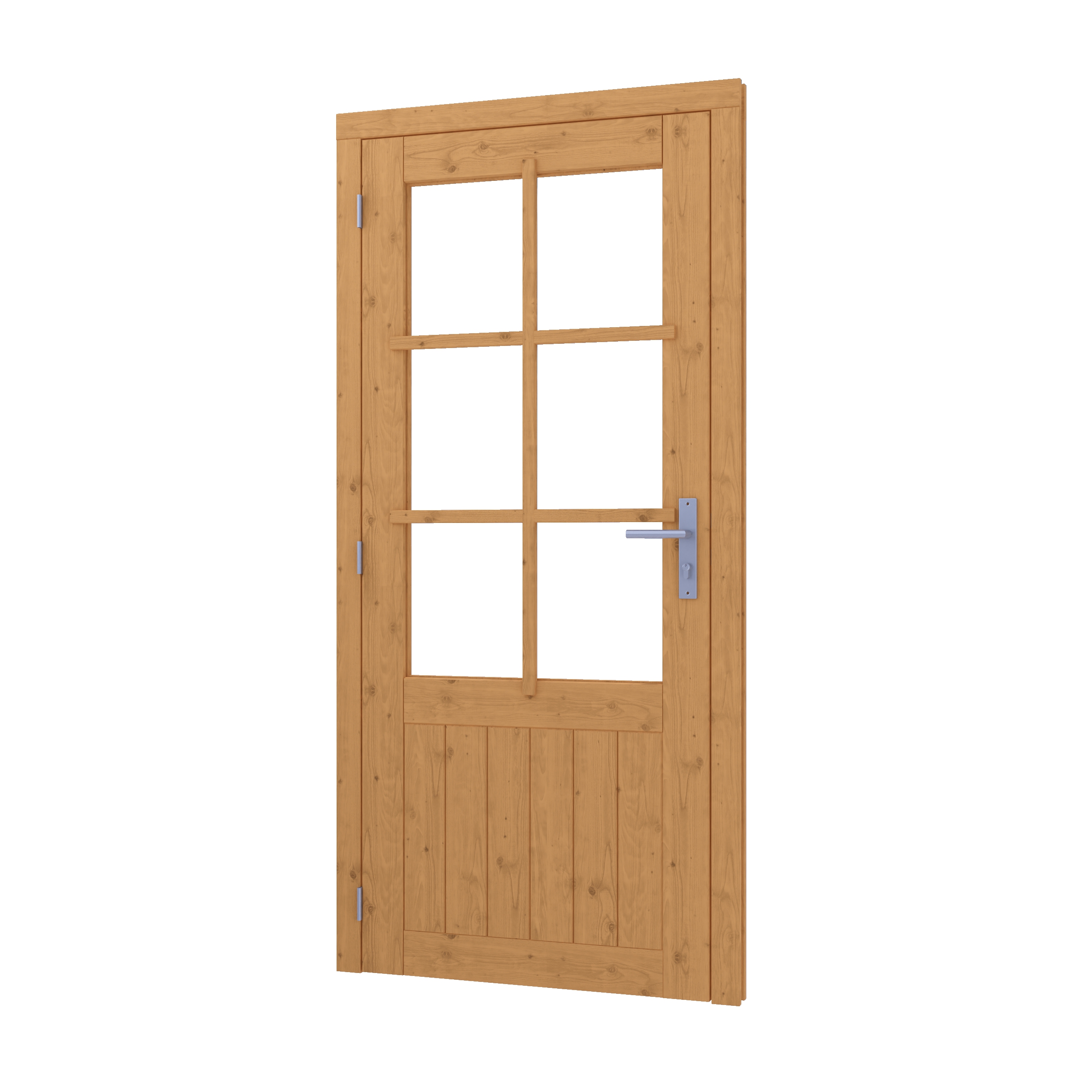 Deze linksdraaiende (LD) Douglas Glasdeur enkel van 830x1942 mm biedt een stijlvolle en lichte toegang tot je tuinkamer, veranda of buitenverblijf. Inclusief kozijn (964x2013 mm) en breedte (BW) van 689 mm. Gemaakt van onbehandeld Douglas hout, zodat je zelf de afwerking kunt bepalen.