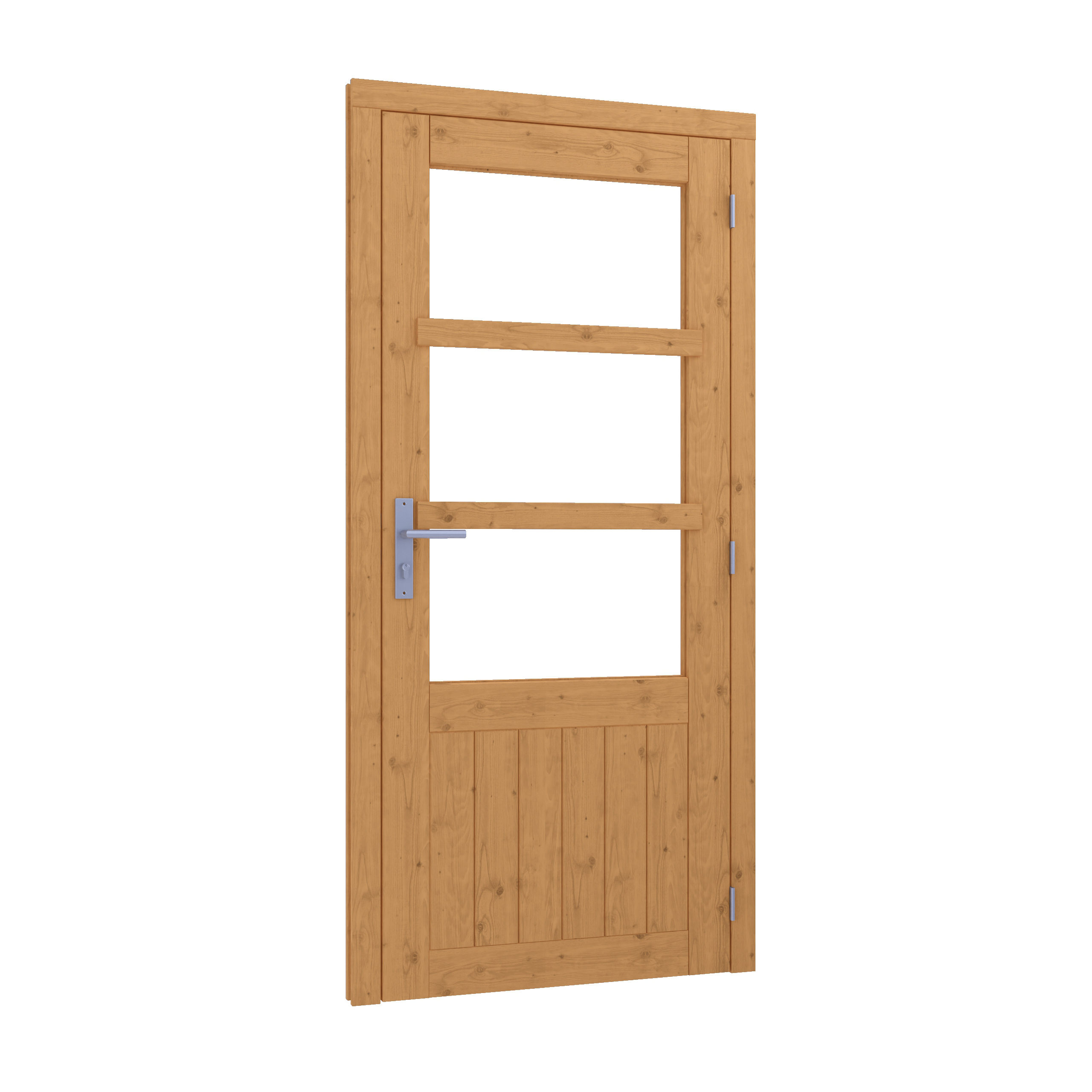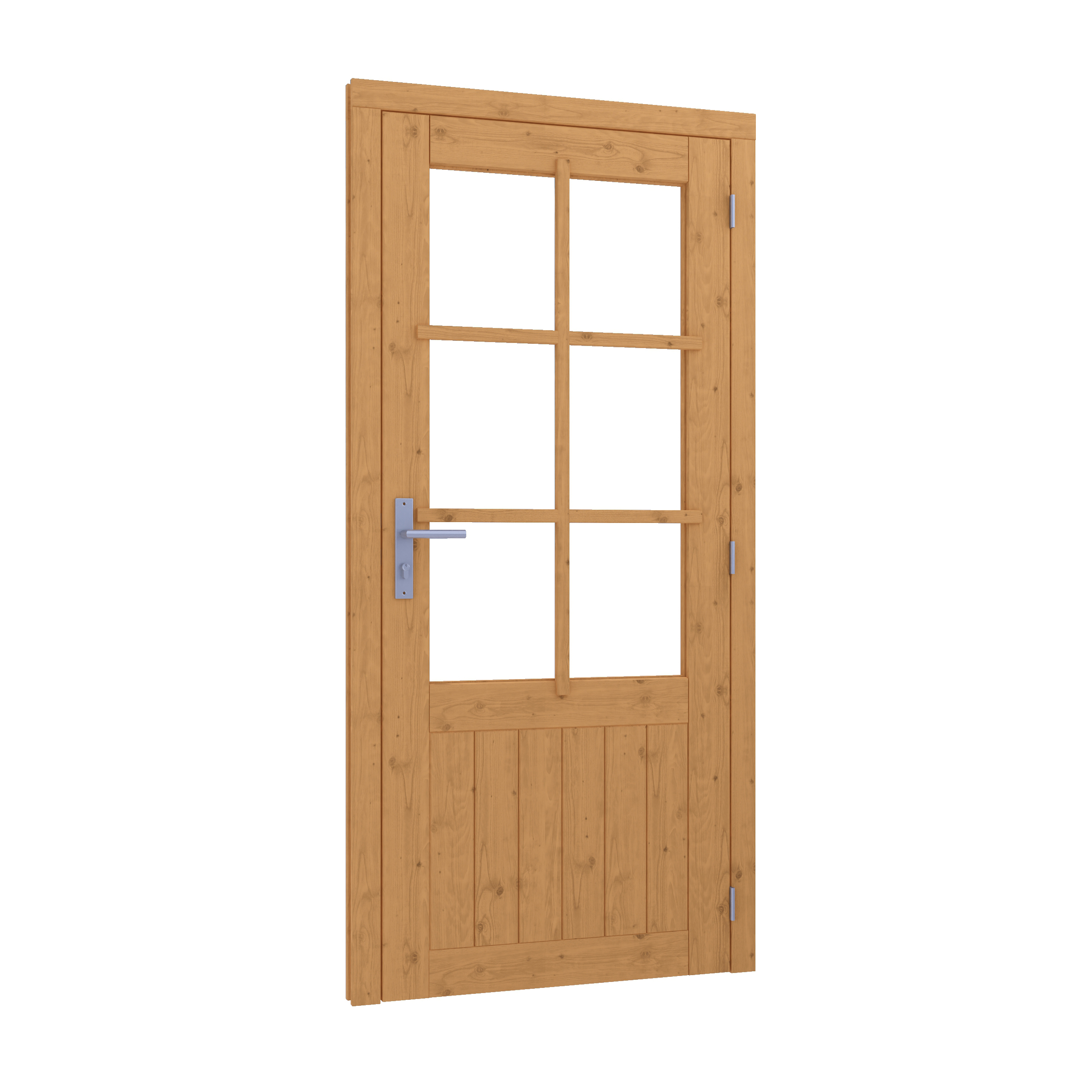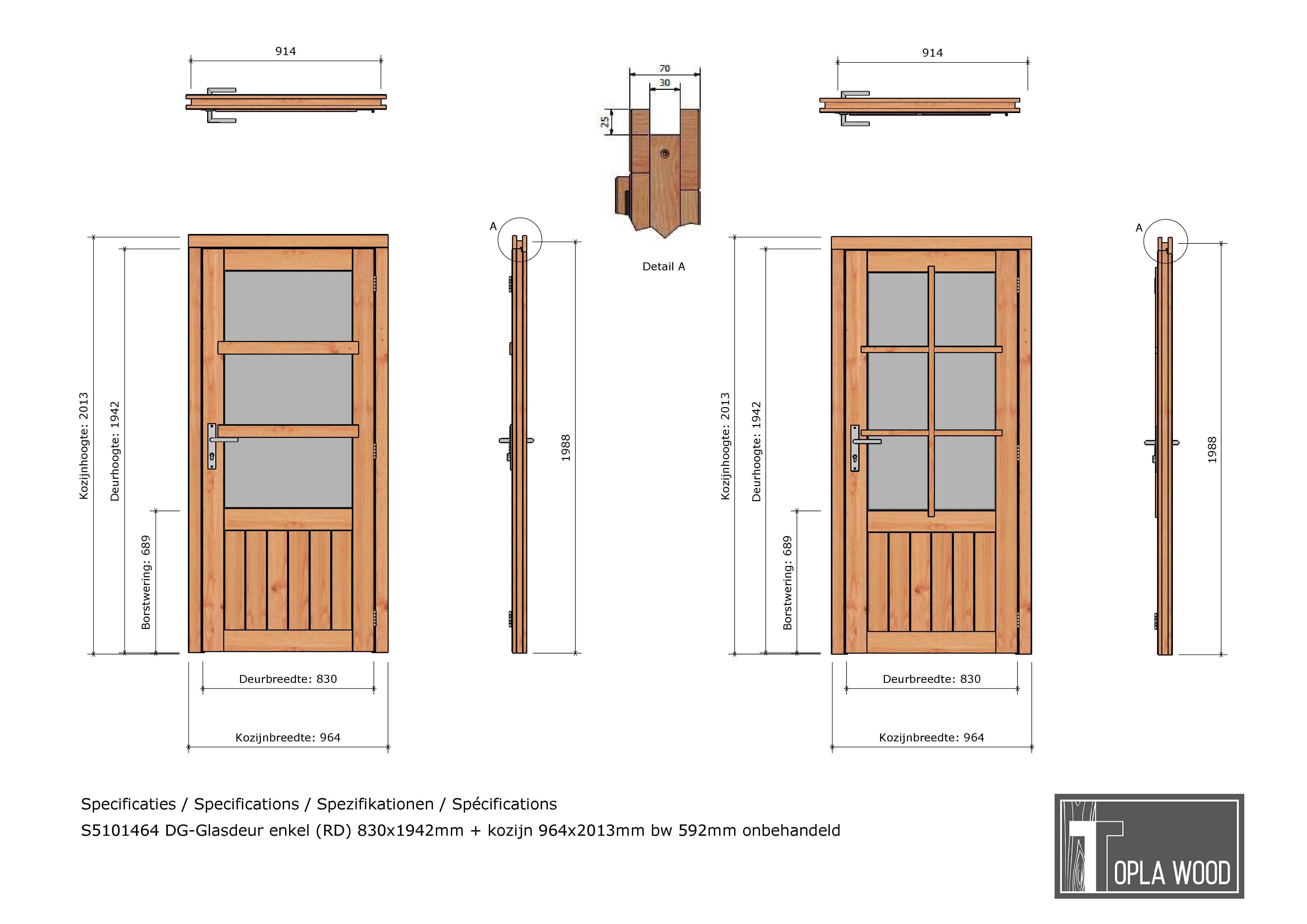 Deze rechtsdraaiende (RD) Douglas Glasdeur enkel van 830x1942 mm biedt een stijlvolle en lichte toegang tot je tuinkamer, veranda of buitenverblijf. Inclusief kozijn (964x2013 mm) en breedte (BW) van 689 mm. Gemaakt van onbehandeld Douglas hout, zodat je zelf de afwerking kunt bepalen.