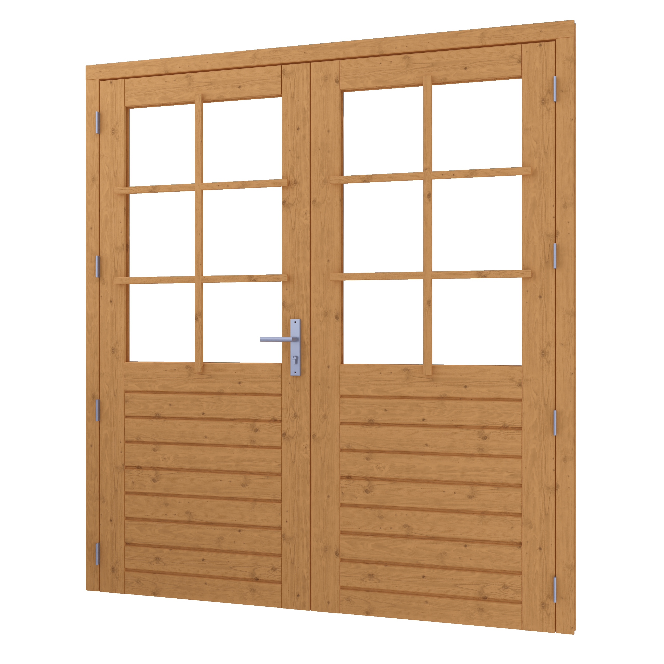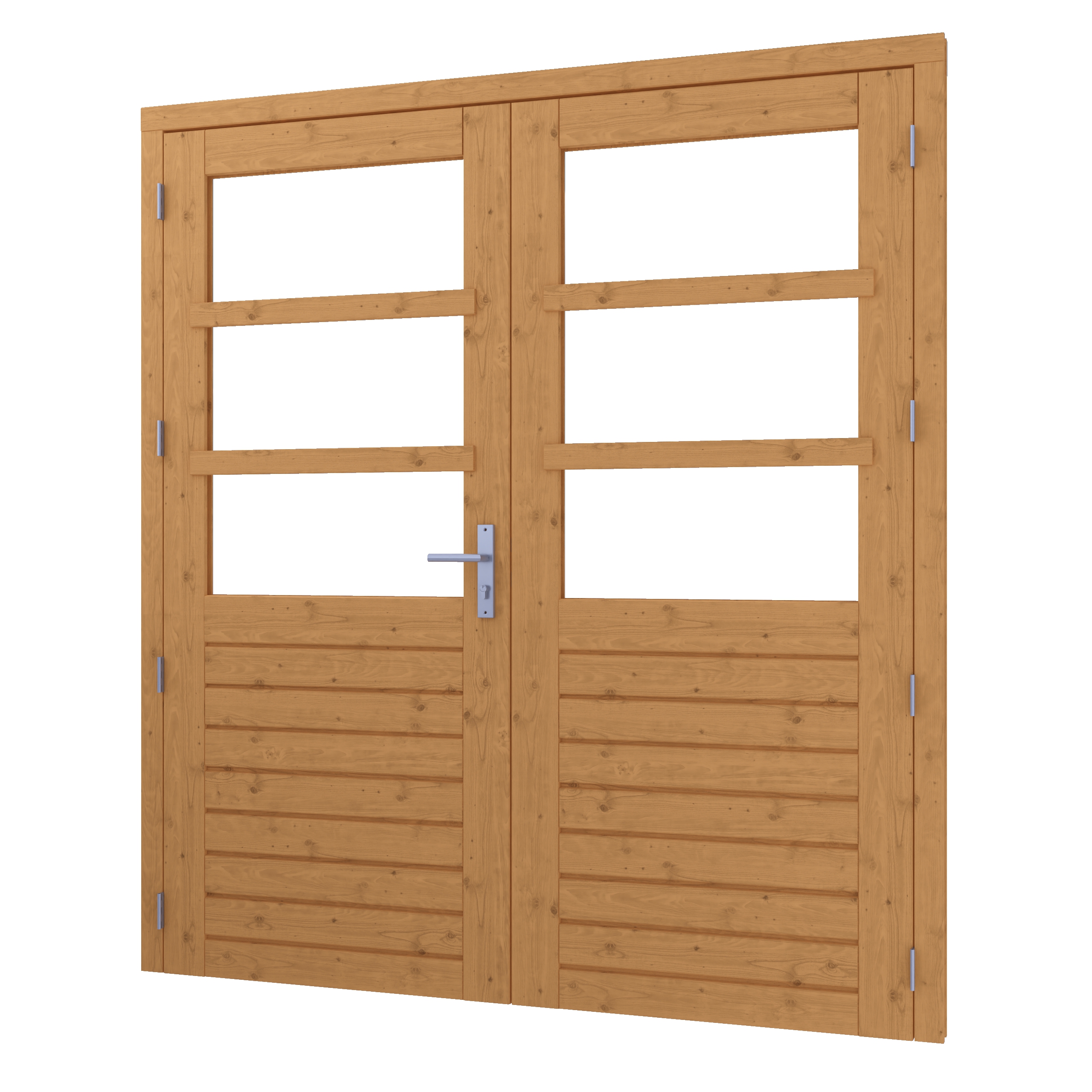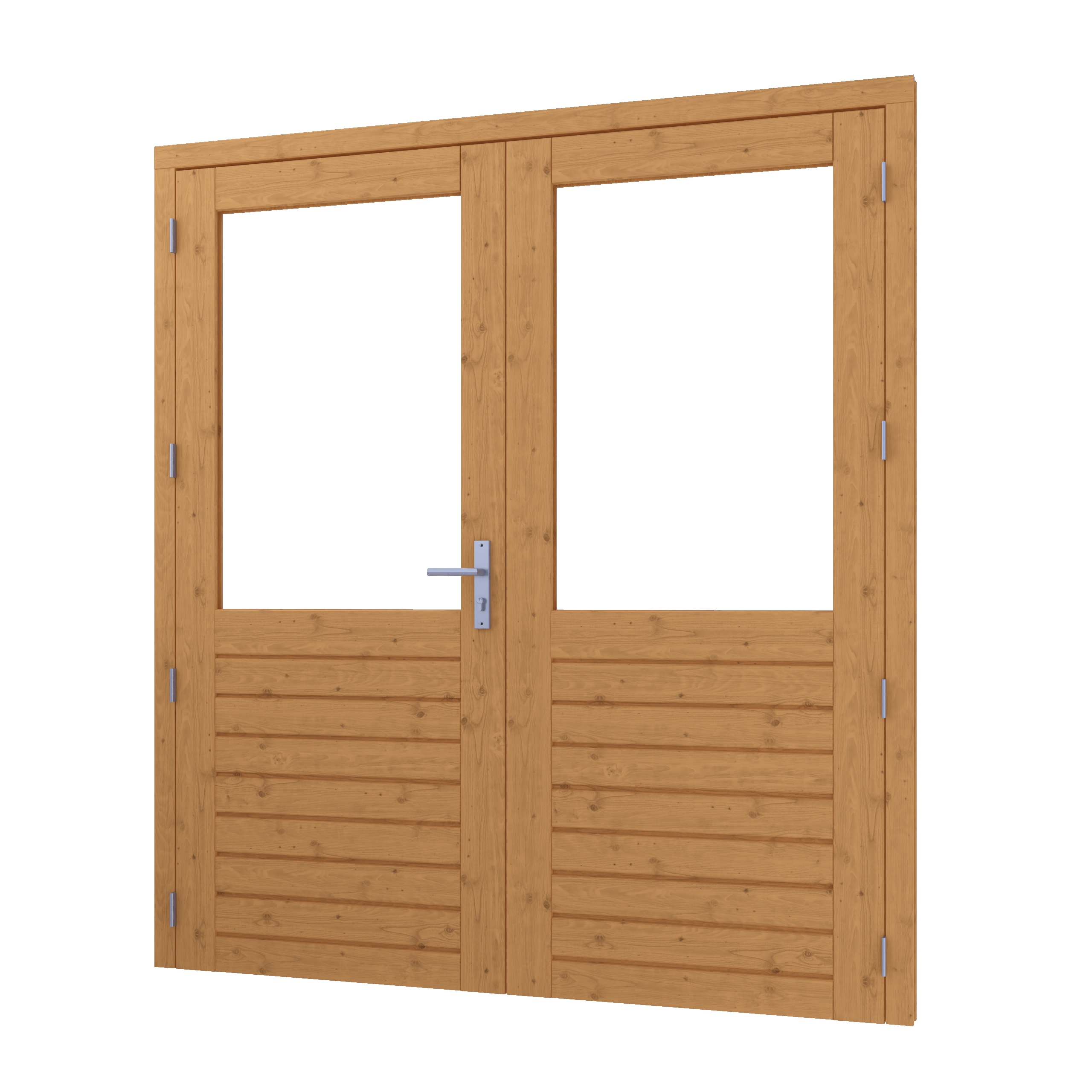 Ruime dubbele Douglas stapeldorpeldeur DELUXE, rechtsdraaiend, met dubbelglas en SKG-slot.