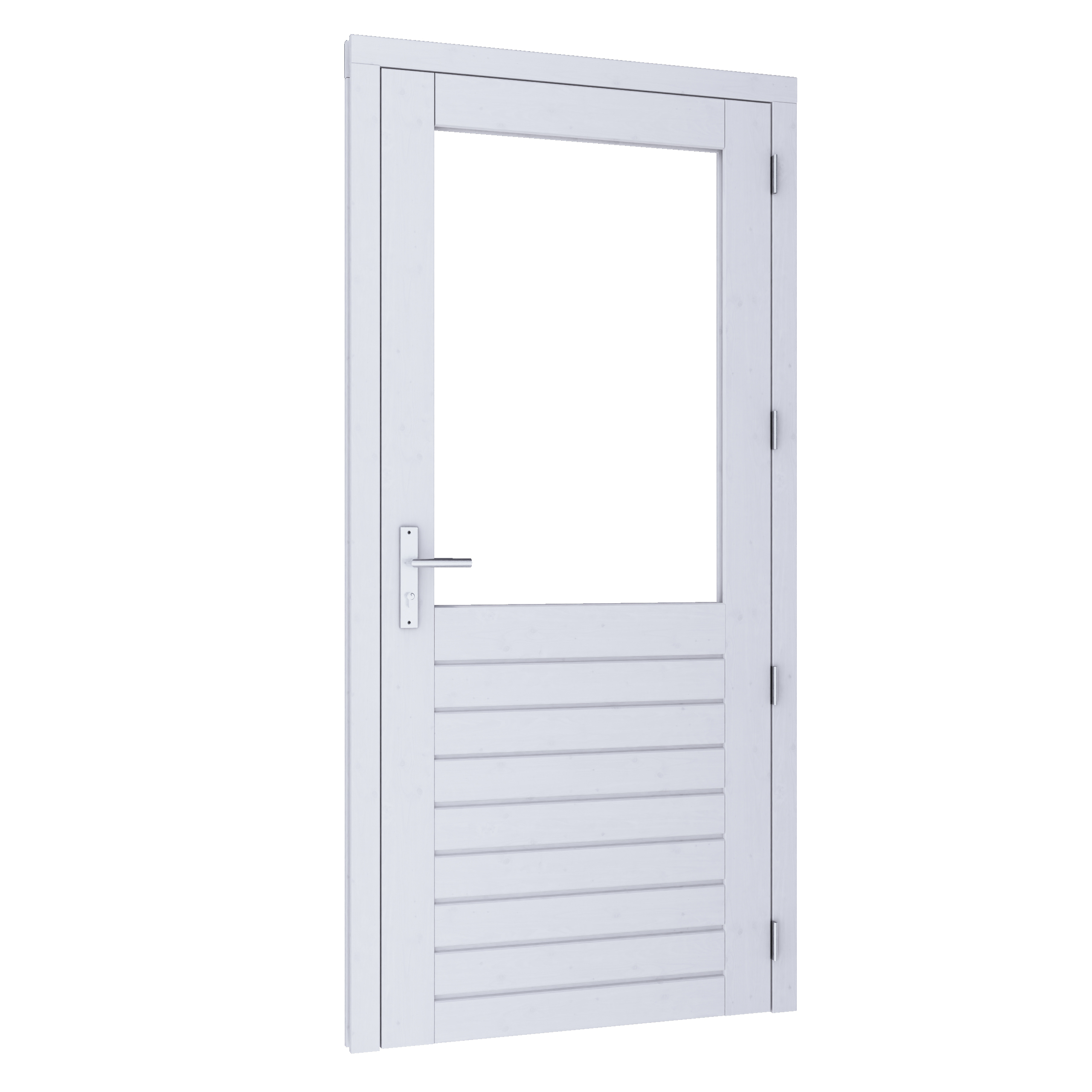 Douglas Stapeldorpeldeur enkel DELUXE (rechtsdraaiend) 930×2111 mm met kozijn 1064×2191 mm, wit gegrond, inclusief SKG-slot en dubbelglas.