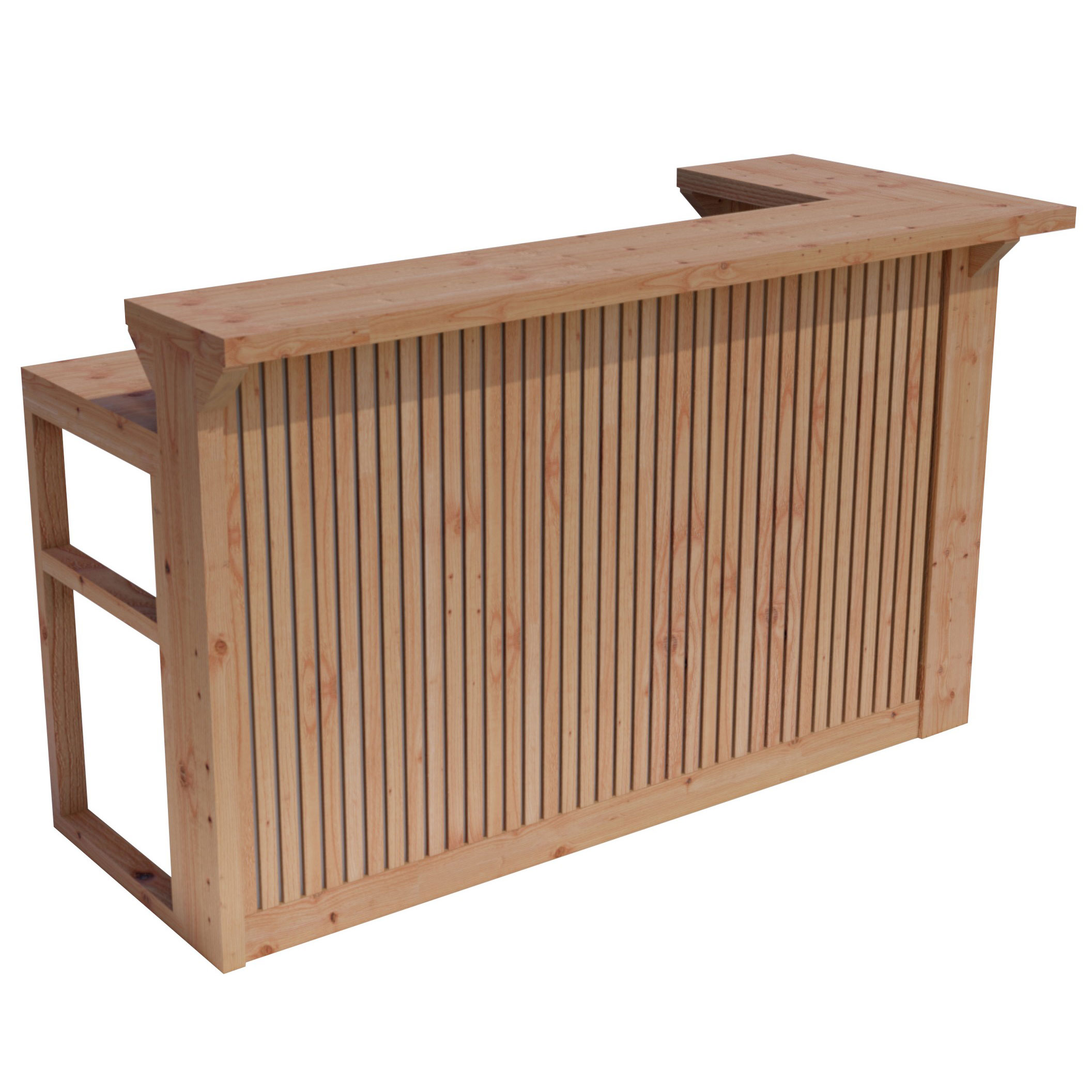 Topla Barmodule 1950x850x1150 mm, uitgevoerd in Deens rabat planken en Red Class behandeld. Modulair ontwerp, geschikt voor uitbreiding en passend bij binnenwanden van uw buitenverblijf.