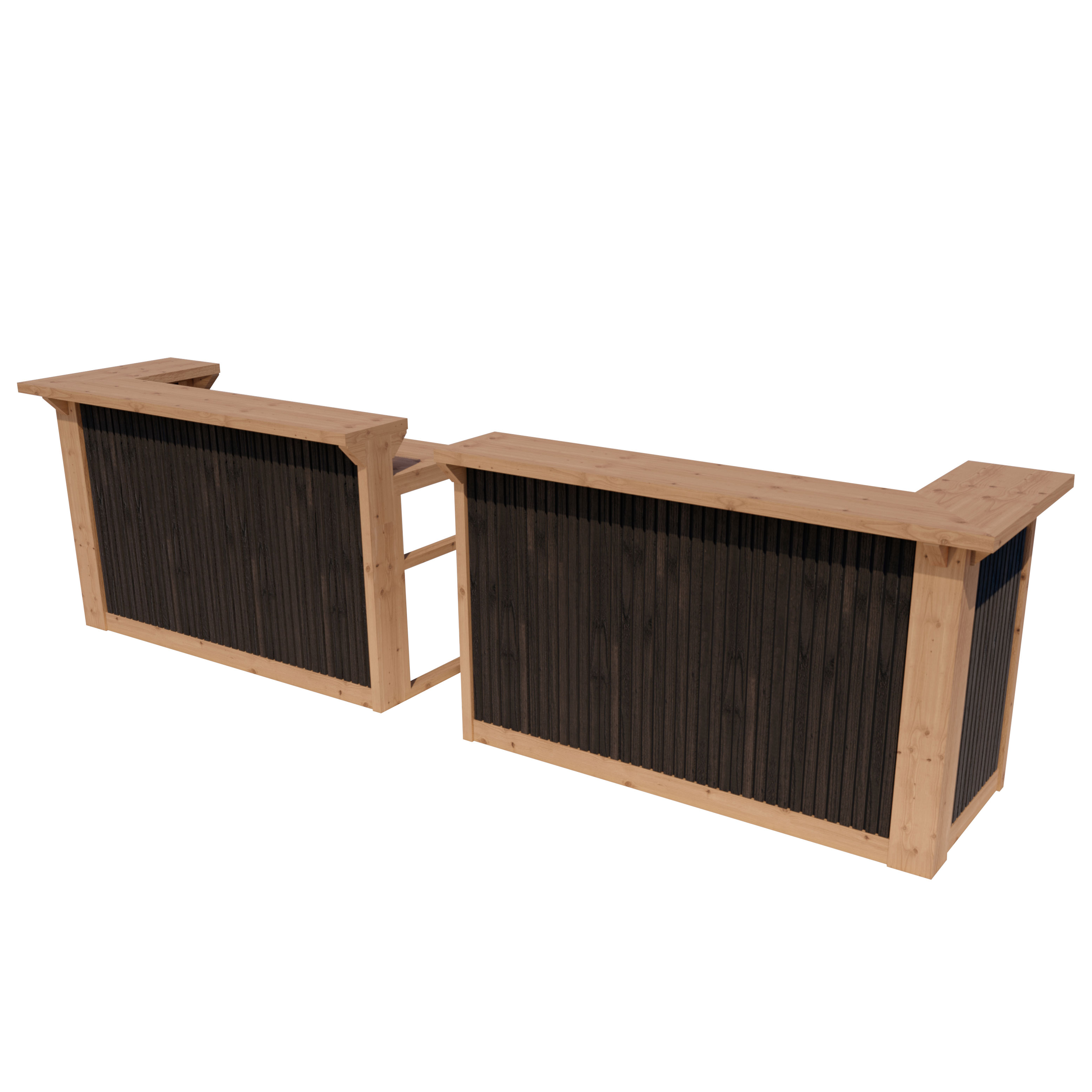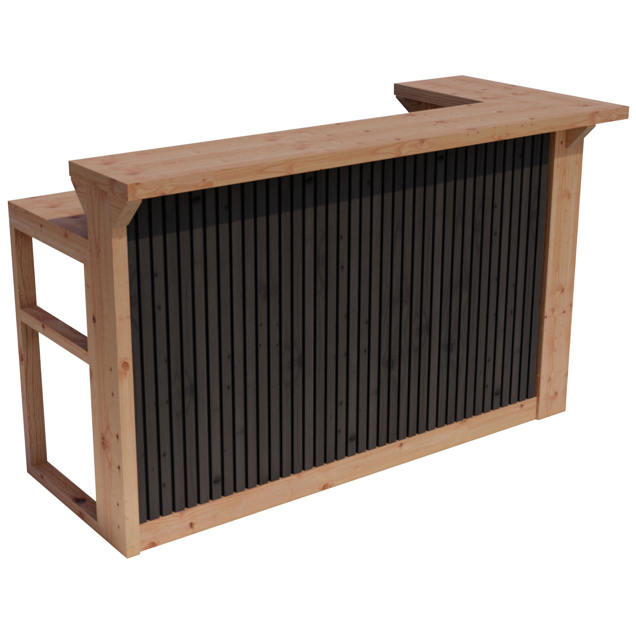 Topla Barmodule 1950x850x1150 mm, uitgevoerd in Deens rabat planken, zwart gespoten. Modulair ontwerp, geschikt voor uitbreiding en passend bij binnenwanden van uw buitenverblijf.