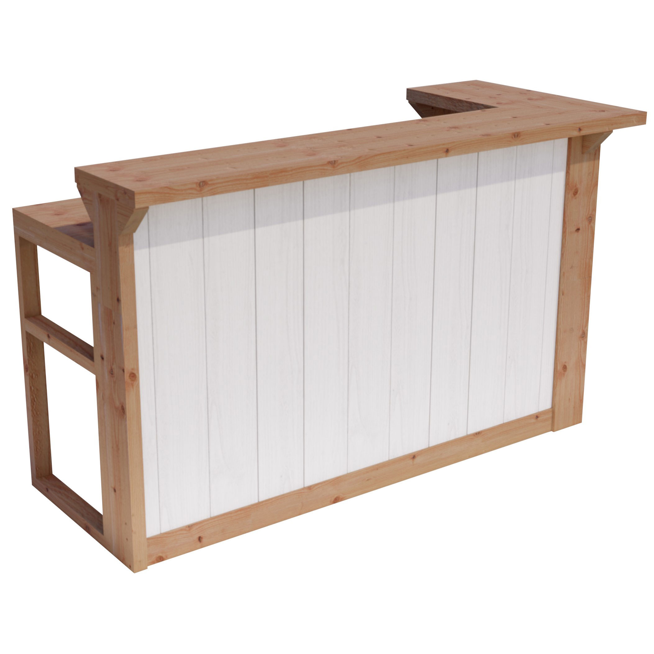 Topla Barmodule 1950x850x1150 mm, uitgevoerd in sponningplanken, wit gespoten. Modulair ontwerp, geschikt voor uitbreiding en passend bij binnenwanden van uw buitenverblijf.