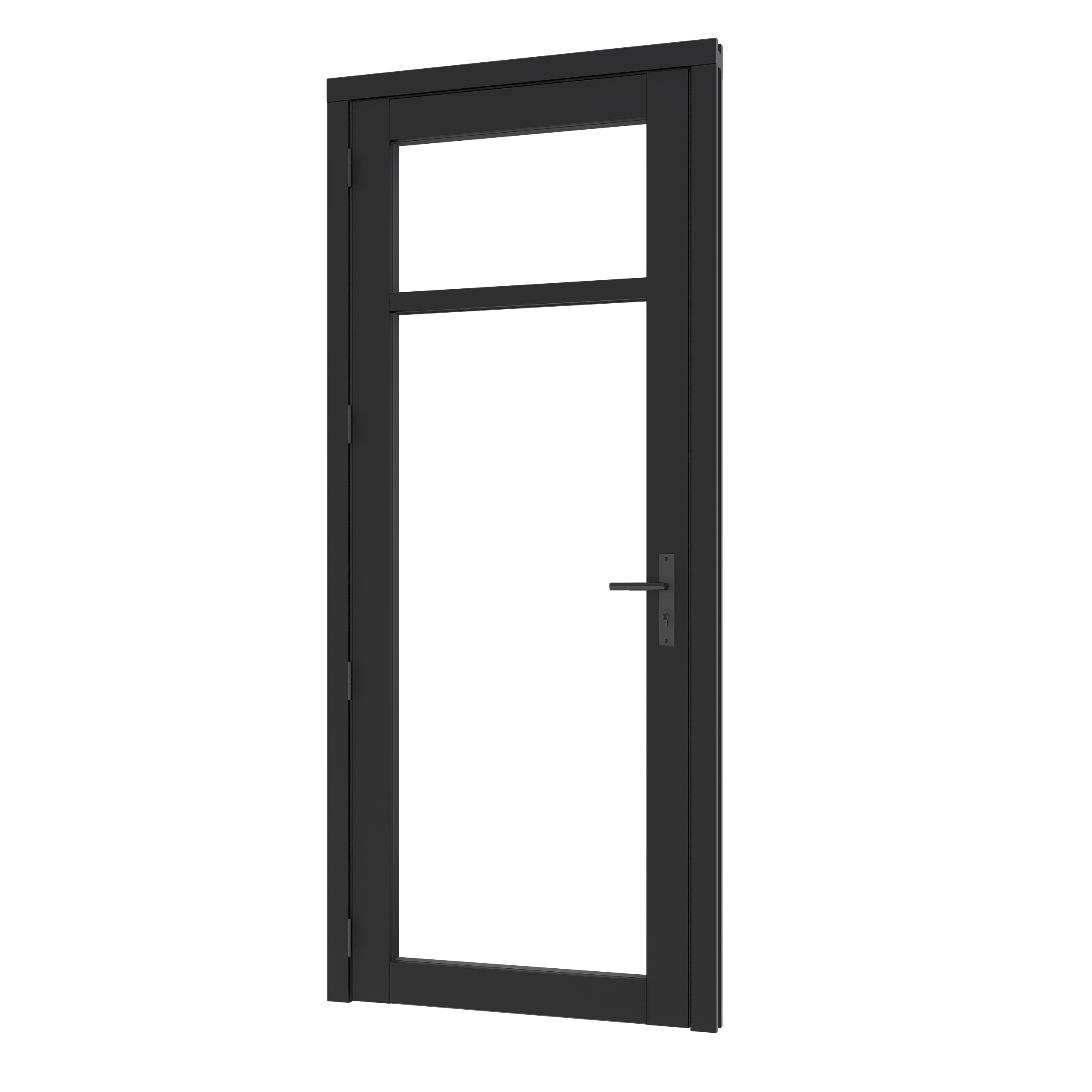 Douglas Steellook deur enkel (linksdraaiend) 880×2274 mm + kozijn 1012×2345 mm, zwart gespoten, gelaagd dubbelglas met 1 roede. Moderne uitstraling, functioneel en duurzaam.