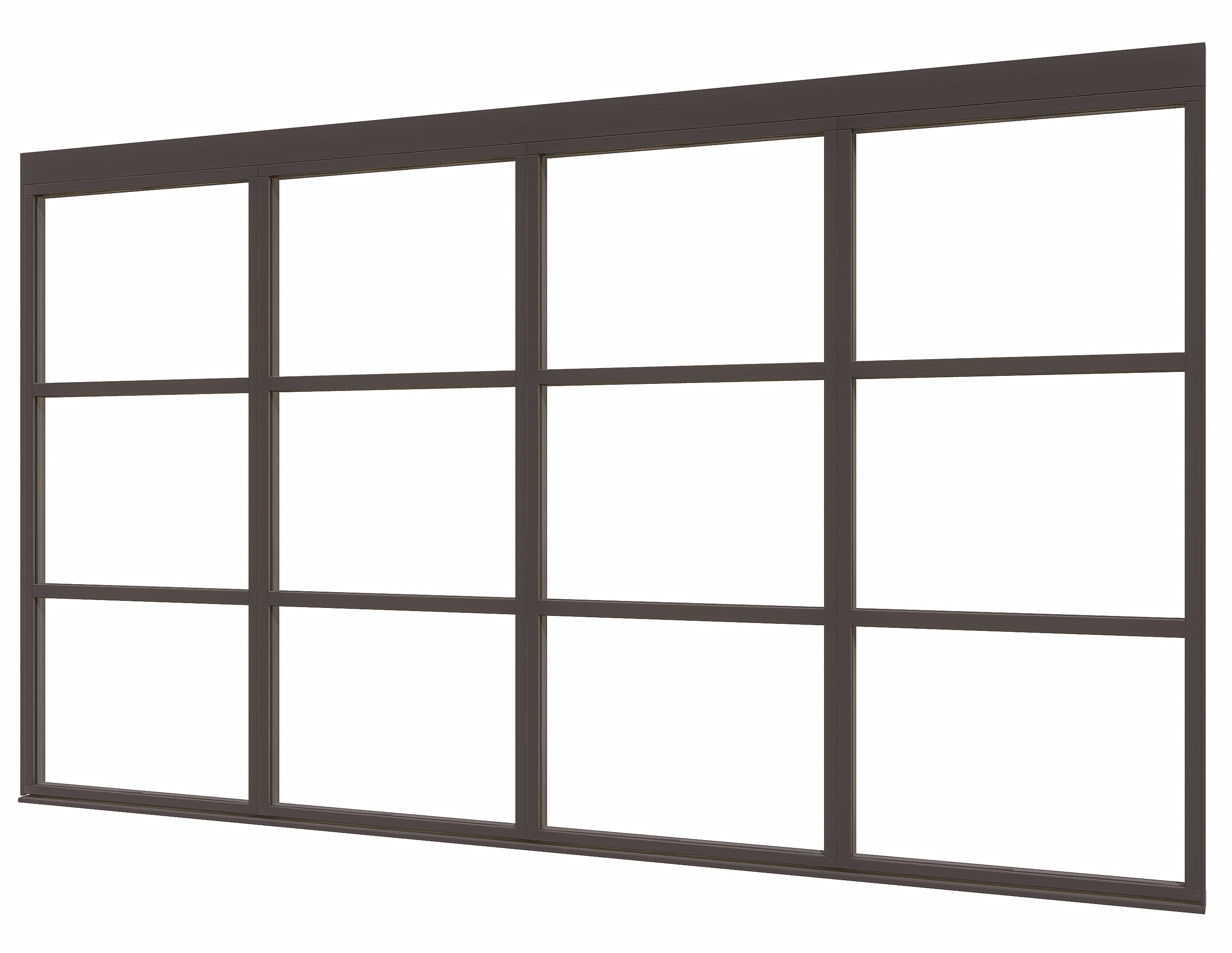 Douglas Steellook glaswand V-02 3935x2300 mm met zwart gespoten stelkozijnset en dubbel gelaagd glas. Duurzaam Douglas hout met strak steellook design, ideaal voor buitenverblijven, veranda’s en tuinkamers.