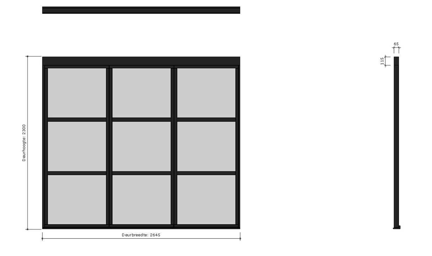DOUGLAS Steellook glaswand S 2645x2300 + stelkozijnset ZWART gespoten (incl.gelaagd enkelglas)